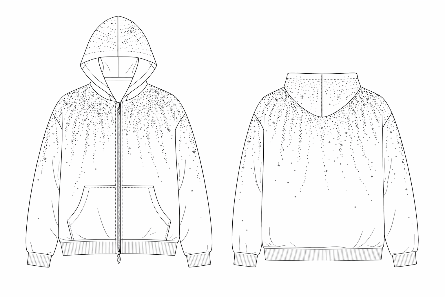 Stellar and Cosmic Themes: Many pieces, such as the Stellar Diamond Hoodie and Milky Way Jaquard Set, draw inspiration from the cosmos, using light-reflecting materials to mimic stars and celestial patterns.